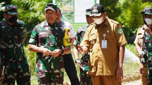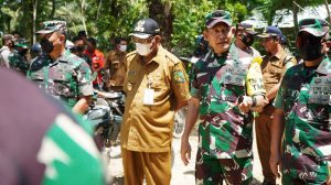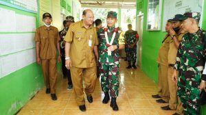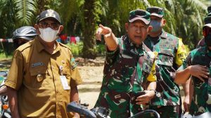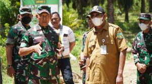 Pelaksana Tugas (Plt) Bupati Langkat H Syah Afandin SH ikut meninjau pembangunan fisik dan non fisik program TMMD (TNI Manunggal Membangun Desa) Kodim 0203/Langkat ke 113 tahun 2022, di Desa Lama Baru, Kecamatan Sei Lepan, Kabupaten Langkat, Senin (30/5/2022).