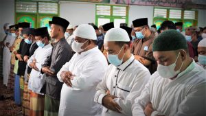 Bupati Langkat Terbit Rencana PA beserta jajaran Pemkab Langkat melaksanakan sholat ghaib untuk almarhum Haji Anif Shah bin Gurlang Shah, ayah dari Wagubsu H.Musa Rajekshah, Jum’at (27/8/2021).