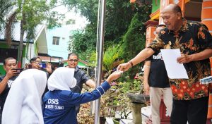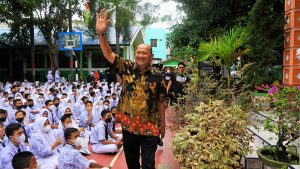 Pelaksana Tugas (Plt) Bupati Langkat H Syah Afandin SH hadiri kegiatan gerakan kampanye koran millenial Sumatera Utara, di SMP Negeri 1 Stabat, Kamis (15/9/2022).