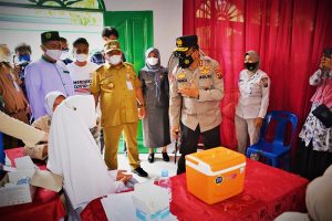 Kedatangan Kapoldasu untuk meninjau pelaksanaan vaksinasi dosis pertama bagi para santri di Pondok Pesantren Ulumul Qur’an Stabat, Langkat.