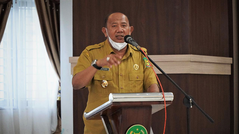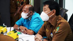 Kemudian Plt Bupati Langkat mengikuti arahan Presiden RI Ir.Joko Widodo melalui Vidio Confrence dari LCC Kantor Bupati Langkat, Stabat.
