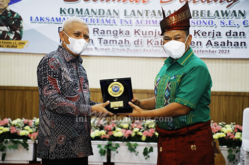 Kegiatan tersebut diakhiri dengan serah terima cinderamata dari Unsur Forkopimda Kabupaten Asahan kepada Komandan Lantamal I Belawan.