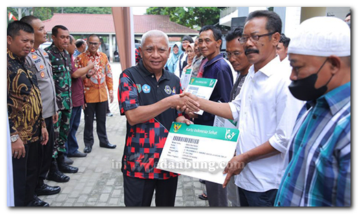 Bupati Asahan H. Surya Bsc dan Wakil Bupati Asahan bersama Forum Koordinasi Pimpinan Daerah Kabupaten Asahan dan Kepala Kantor BPJS Kesehatan Cabang Kisaran serta didampingi Asisten III dan beberapa OPD Kabupaten Asahan menyerahkan bukti kepesertaan BPJS PBI (Penerima Bantuan Iuran).
