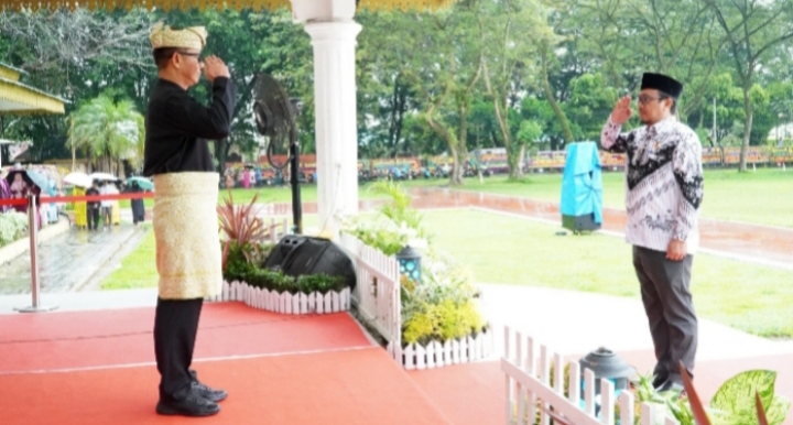 Bupati Langkat H. Syah Afandin, SH melalui Sekretaris Daerah Kabupaten Langkat, Amril, S.Sos., M.AP bertindak sebagai pembina upacara peringatan Hari Ulang Tahun (HUT) Persatuan Guru Republik Indonesia (PGRI) ke-80 tahun 2025 yang berlangsung di Tribun T. Amir Hamzah Stabat, Selasa (25/11/2025).