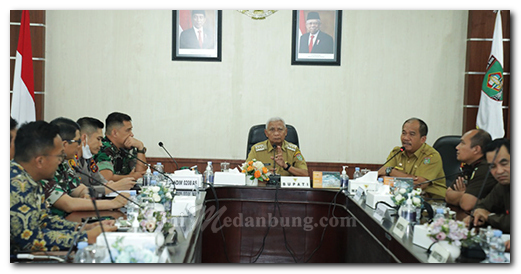 Bupati dan Wakil Bupati Asahan bersama Forkopimda Kabupaten Asahan yakni Dandim 0208/Asahan, Kapolres Asahan, Kajari Asahan, Danlanal TBA dan Ketua PN Kisaran serta Ketua PA Kisaran, Asisten dan OPD menerima audiensi PLTA Asahan 3 di Aula Mawar Kantor Bupati Asahan, Selasa (15/11/2022).