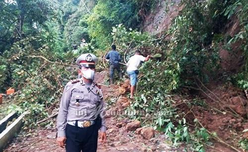 Sebelumnya pihak nya berkoordinasi dengan Dinas PU Kab Langkat dan Kepolisian beserta masyarakat bahu membahu membersihkan material longsoran dan mengevakuasi tumpukan material yang berada di badan jalan sepanjang 15 meter jalan penghubung Kab Langkat dan Kab Karo.