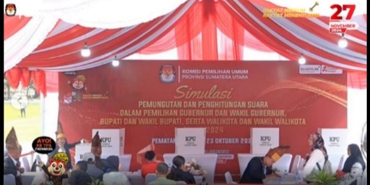 Komisi Pemilihan Umum (KPU) Provinsi Sumatera Utara menyelenggarakan simulasi pemungutan dan penghitungan suara dalam rangka persiapan Pemilihan Kepala Daerah (Pilkada) Serentak 2024 di Kota Pematangsiantar, pada Rabu (23/10/2024).