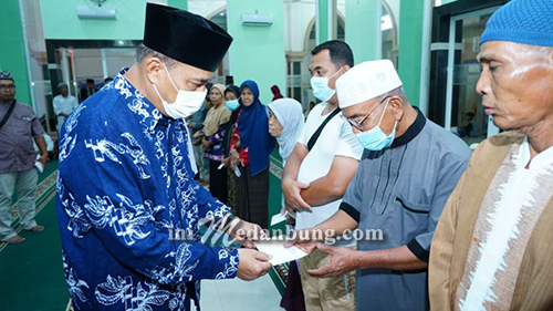 Pada kesempatan ini juga dilakukan penyerahan bantuan dari Bank Sumut untuk penjaga masjid 80 orang, sementara Pemko Tebing Tinggi memberikan bantuan untuk 10 orang kaum dhuafa dan 20 anak yatim.
