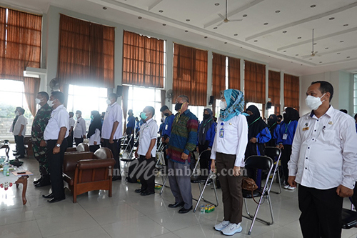 Pemko Tebing Tinggi bekerja sama dengan Kodim 0204/DS menggelar kegiatan pemantapan pemahaman pelaksanaan kebijakan di bidang Ideologi Wawasan Kebangsaan dan Bela Negara dengan tema “Generasi Muda Menghadapi New Normal di Masa Pandemi Covid-19 Dalam Aktualisasi Nilai-Nilai Kebangsaan”. Kegiatan digelar di Gedung Mangampu Tua Jl. Prof. Dr. Hamka Kota Tebing Tinggi, Rabu (08/09/2021).