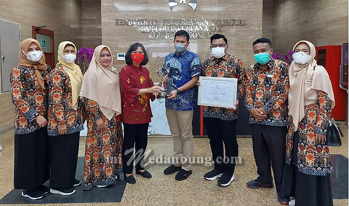 Kementerian Pemberdayaan Perempuan dan Perlindungan Anak (PPPA) melalui Deputi Bidang Perlindungan Hak Anak Kementrian PPPA, Agustina Erni, menyerahkan piala dan piagam penghargaan Kabupaten Layak Anak (KLA) level Madya yang diterima oleh Wakil Bupati (Wabup) Sergai H. Adlin Umar Yusri Tambunan, ST, MSP, Kamis (4/8/2022). Apresiasi ini diserahkan di kantor Kementerian PPPA, Jl. Medan Merdeka Barat No.15, RT 2/RW 3, Gambir, Kecamatan Gambir, Jakarta Pusat.