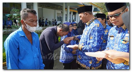 Pelaksana Tugas (Plt) Bupati Langkat H Syah Afandin SH bertindak sebagai inspektur upacara peringatan hari ulang tahun (HUT) ke-51 tahun Korps Pegawai Republik Indonesia (KORPRI) tingkat Kabupaten Langkat, dihalaman utama Kantor Bupati Langkat, Stabat, Senin (05/12/2022)