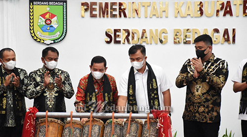 Gubernur Sumatera Utara Edy Rahmayadi yang diwakili oleh Asisten Pemerintahan dan Kesejahteraan Rakyat Drs. H. Mhd Fitriyus, SH, MSP membuka sambutannya dengan memuji Gedung Kantor Bupati Sergai yang bagus.