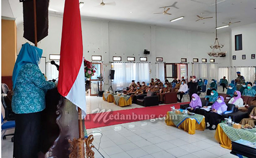 Kunjungan diterima Bupati Langkat Terbit Rencana PA melalui Kadis PMD Sutrisuanto, bersama Ketua TP PKK Tiorita Terbit Rencana beserta jajaran pengurus, di Aula Gedung PKK Langkat, Stabat, Senin (11/10/2021).