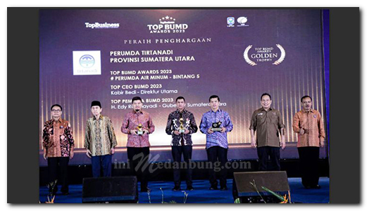 Gubernur Sumatera Utara Edy Rahmayadi meraih Top Pembina dan Perumda Tirtanadi berhasil meraih bintang 5 pada acara Top Badan Usaha Milik Daerah (BUMD) berlangsung di Jakarta Rabu (5/4/2023) malam. Sementara Dirut Kabir Bedi mendapatkan Top Ceo BUMD 2023.