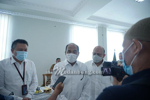 Walikota Tebing Tinggi Ir. H. Umar Zunaidi Hasibuan, MM., didampingi Asisten Perekonomian dan Pembangunan Gul Bakhri Siregar S.I.P., M.Si menghadiri pertemuan dengan tim bisnis PT. Prima Multi Terminal selaku pengelola Pelabuhan di Kuala Tanjung, Selasa (30/3), bertempat di Ruang Aula Gedung Balai Kota.