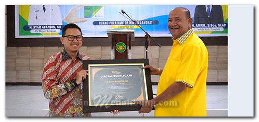 Selanjutnya Plt Bupati Langkat H. Syah Afandin mendapatkan piagam penghargaan dari kepala kantor wilayah Sumbagut BPJS Ketenagakerjaan.