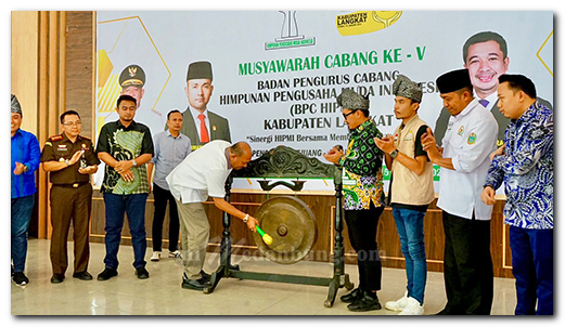 Pelaksana Tugas (Plt) Bupati Langkat H Syah Afandin SH buka Musyawarah Cabang (MUSCAB) ke-V Badan Pengurus Cabang Himpunan Pengusaha Muda Indonesia (BPC HIPMI) Kabupaten Langkat tahun 2023, di Jentera Malay Rumah Dinas Bupati Langkat, Stabat, Rabu (15/2/2023).