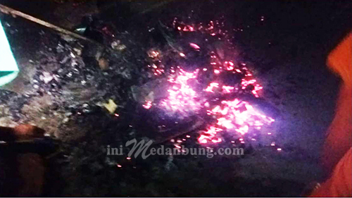 Foto: Terlihat mesin judi yang dibakar hanya tinggal bara saja. (*)
