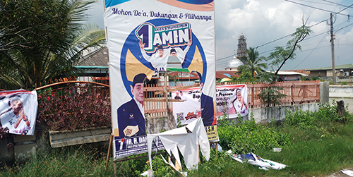 Seperti di Belawan, spanduk nomor urut 1 dan nomor 2 banyak yang dikoyak koyak OTK.Sementara itu para simpatisan yang memasang spanduk spanduk tersebut tidak bersedia memberikan keterangan kepada wartawan. ***