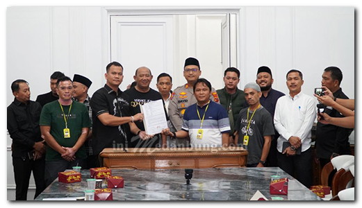 Selanjutnya dilakukan penandatanganan berita acara kesepakatan perdamaian kedua belah pihak dan Penasihat Hukum serta pihak-pihak yang terlibat dalam kegiatan tersebut. ***