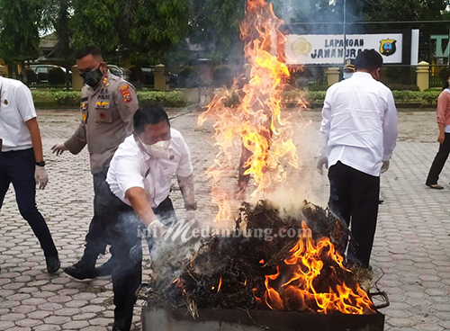Sementara, Kapolres Langkat menjelaskan secara rinci BB yang dimusnahkan.
