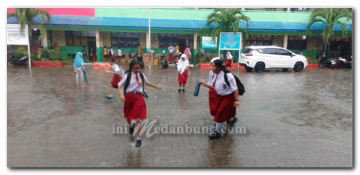 Terlihat anak anak yang sekolah di SD Jalan Hiyu Belawan terpaksa harus membuka sepatutnya saat mau keuangan kelas maupun saat pulang sekolah.