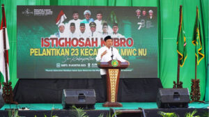 Plt Bupati Langkat H.Syah Afandin,SH bersama Wakil Ketua Umum PB Nahdlatul Ulama (NU) KH. Zulfa Mustofa hadiri acara Istighosah Kubro dan Pelantikan 23 MWC Nahdlatul Ulama Kecamatan se-Kabupaten Langkat, bertempat di Lap. Alun-Alun T. Amir Hamzah Stabat, Sabtu 19 Agustus 2023.