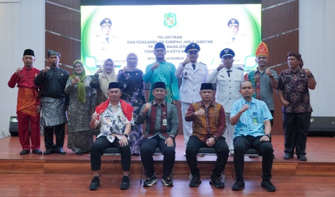 Sebanyak 10 Pejabat Manajerial di lingkungan Pemko Medan dilantik dan diambil sumpah jabatannya oleh Wali Kota Medan, Bobby Nasution diwakili Sekda Kota Medan, Wiriya Alrahman di Kantor Wali Kota Medan, Jum’at (8/12/2023).