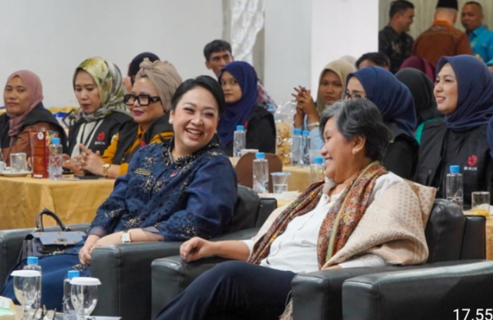 Dalam kesempatan tersebut, Airin menyelempangkan songket Melayu kepada Lestari Moerdijat sebagai bentuk penghormatan sekaligus penguatan identitas lokal.