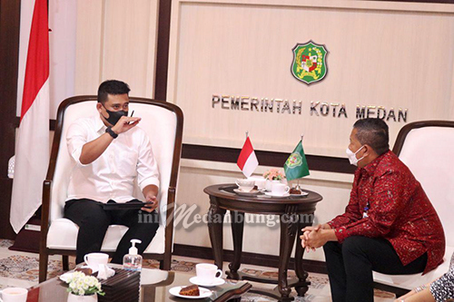 Bank Sumut Regional I/Sumatera 1, Lourentius Aris Budiyanto saat beraudiensi dengan Wali Kota Medan, Bobby Nasution, Selasa (26/10/2021) di Ruang Khusus Kantor Wali Kota Medan.