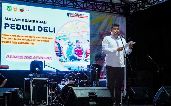 Wali Kota Medan Bobby Nasution menyampaikan apresiasi pada 1.852 peserta gotong royong Sungai Deli yang terdiri atas unsur Petugas Pemelihara Prasarana dan Sarana Umum (P3SU), unsur TNI AD, Badan Wilayah Sungai Sumatera (BWSS) II, Dinas Sumber Daya Air Bina Marga Bina Konstruksi (SDABMBK), dan Badan Penanggulangan Bencana Daerah (BPBD).