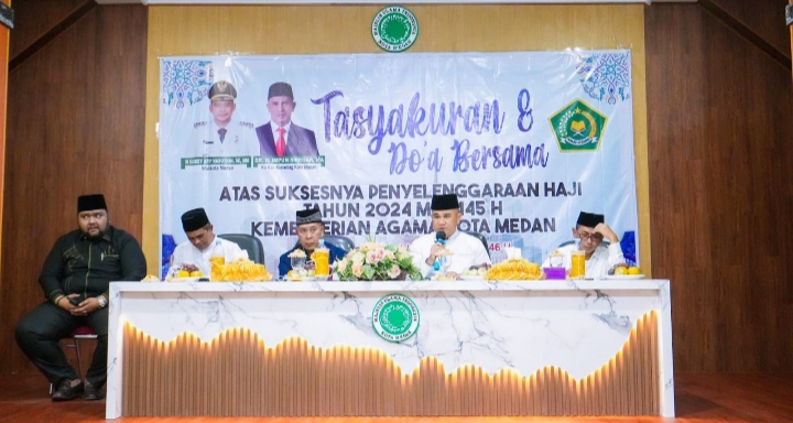 Harapan ini disampaikan Wali Kota diwakili Asisten Pemerintahan dan Kesejahteraan Rakyat, Muhammad Sofyan, saat menghadiri Tasyakuran dan Doa Bersama Penyelenggaraan Ibadah Haji 2024 yang diselenggarakan Kantor Kementerian Agama Medan, Minggu (4/8/2024).
