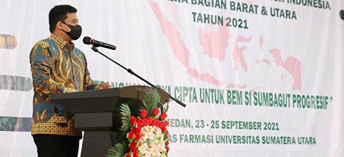 Dorongan ini disampaikan Bobby Nasution saat membuka Rapat Kerja Wilayah (Rakerwil) Badan Eksekutif Mahasiswa (BEM) Seluruh Indonesia Sumatra Bagian Barat dan Utara Tahun, Kamis (23/9/2021). “Jika ada ide yang inovatif yang dapat membantu masyarakat, datang ke kami, komunikasikan dan kita jalin kolaborasi untuk mewujudkan ide-ide tersebut,” ucap Bobby Nasution dalam acara yang dihadiri Rektor USU, Dr. Muryanto Amin, Kepala Kesbangpol Medan, Sulaiman Harahap, Presiden Mahasiswa USU yang juga Koordinator BEM SI Sumbagut, Rizki, dan segenap pengurus BEM se-Sumbagut.