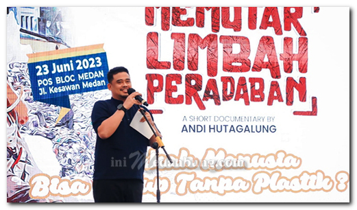 “Penanganan limbah plastik harus komprehensif, mulai dari hulu atau saat dianggap sampah sampai dengan hilirnya atau dengan kata lain sampah plastik dapat digunakan kembali,” Kata Bobby Nasution seusai menonton Film Memutar Limbah Peradaban di Pos Bloc Jumat (23/6/2023).