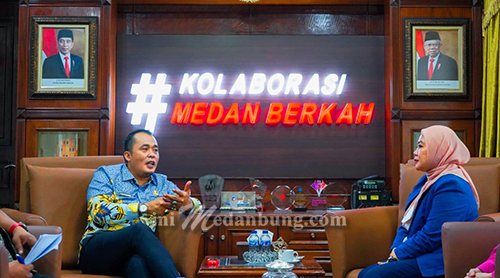 ukungan disampaikan Wali Kota Medan Bobby Nasution diwakili Wakil Wali Kota Medan Aulia Rachman saat menerima Syarfina Febriani selaku Koordinator Literasi Digital Wilayah Sumatera di Balai Kota Medan, Kamis (25/8/2022). Selain bersilaturahmi, kedatangannya juga untuk mengundang Wali Kota atau Wakil Wali Kota agar menjadi narasumber dalam literasi digital segmen pendidikan di Sumut, khususnya Kota Medan yang melibatkan siswa SD, SMP, dan SMU secara webinar dan hybrid. “Atas nama Pemko Medan, saya menyambut baik dengan dilaksanakannya literasi digital segmen pendidikan,” kata Aulia Rachman.