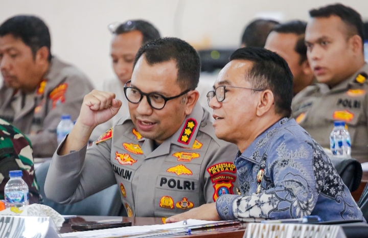 Wakil Wali Kota Medan, Zakiyuddin Harahap, menyampaikan pentingnya kesiapsiagaan seluruh elemen kota dalam menghadapi potensi gangguan keamanan saat menghadiri Tactical Floor Game (TFG) SispamKota yang digelar Polrestabes Medan, Kamis (23/4/2026).