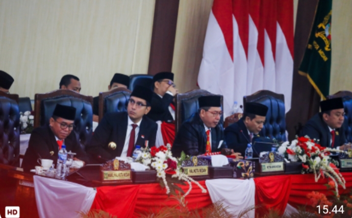 Wali Kota Medan Rico Tri Putra Bayu Waas bersama Wakil Wali Kota Medan H Zakiyuddin Harahap menghadiri Rapat Paripurna DPRD Kota Medan dengan agenda Mendengarkan Pidato Kenegaraan Presiden Republik Indonesia (RI) dalam rangka HUT ke- 80 Kemerdekaan RI di Gedung DPRD Medan, Jumat (15/8/2025).