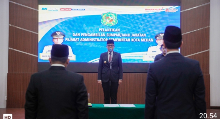 Sejak dilantik menjadi Wali Kota Medan, baru ini kali pertama Rico Tri Putra Bayu Waas melantik pejabat di lingkungan Pemko Medan. Ada 4 Pejabat Administrator di lingkungan Pemko Medan yang dilantik dan diambil sumpahnya di Balai Kota Medan, Senin (23/6/2025) sore.