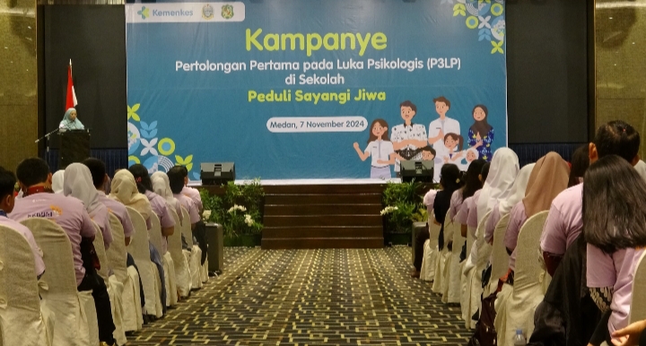 Hal ini disampaikan Plt Wali Kota Medan Aulia Rachman diwakili Kabid Pencegahan dan Pengendalian Penyakit (P2P) Dinas Kesehatan Medan, Pocut Fatimah pada pembukaan Kampanye Pertolongan Pertama Pada Luka Psikologis (P3LP) di Sekolah yang digelar Kemenkes Republik Indonesia di Hotel Grand Mercure, Kamis (7/11/2024).