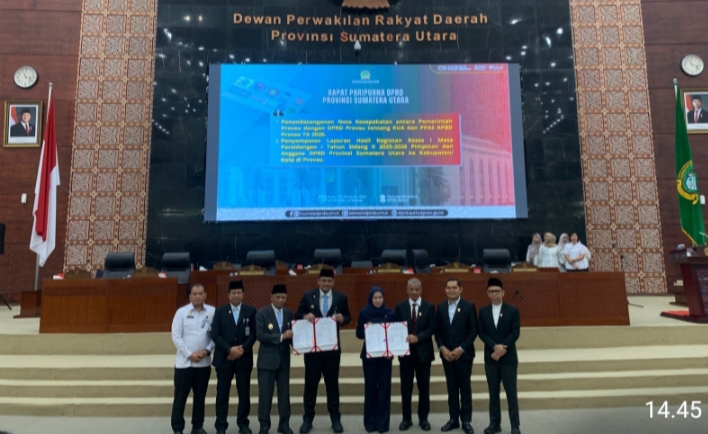 KUA PPAS R-APBD Provsu tahun 2026 tersebut disepakati dan ditandatangani Ketua dan wakil ketua DPRD Sumut Erni Ariyanti Sitorus, Sutarto, Ihwan Ritonga, Salman Alfarisi dan Gubernur Sumut Bobby Nasution, dalam rapat paripurna DPRD Sumut, Selasa (29/10/2025 ) di gedung wakil rakyat Jalan Imam Bonjol Medan.