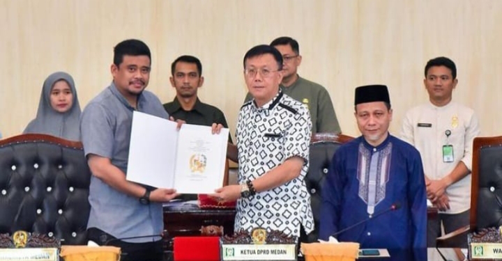 Hal tersebut disampaikan Wali Kota Medan, Bobby Nasution dalam rapat paripurna DPRD Kota Medan dengan agenda Penyampaian Rekomendasi DPRD Kota Medan Terhadap Laporan Keterangan Pertanggungjawaban (LKPJ) Tahun Anggaran 2023 Kepada Kepala Daerah, di gedung DPRD Medan, Selasa (2/4/2024).