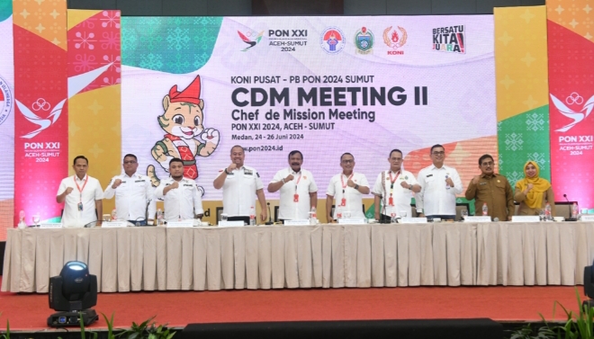 “Kita harus positif, kita mempersiapkan segala sesuatunya dengan sebaik-baiknya, sesuai dengan arahan Presiden, tidak ada kemunduran jadwal pembukaan PON 8 September di Aceh dan penutupan pada 20 September 2024 di Sumatera Utara,” kata Ketua PB PON Sumut Afifi Lubis, pada kegiatan Chef de Mission (CdM) Meeting ke-2, yang diikuti perwakilan seluruh provinsi se-Indonesia, di Hotel Santika Dyandra, Jalan Kapten Maulana Lubis, Medan, Selasa (25/6/2024).