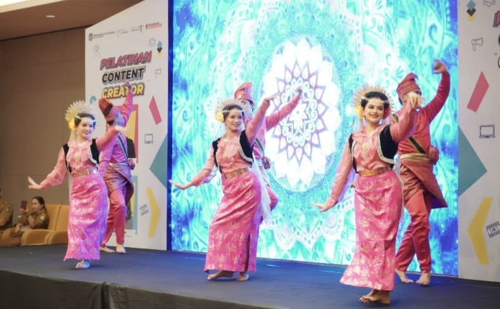 Salah satu atraksi tarian pada pelatihan content creator di hotel JW Marriott, Selasa (7/11/2023). (Diskominfo Medan)