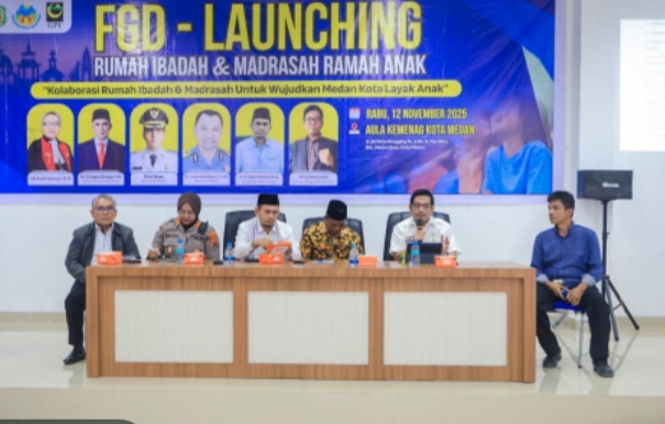 Hal ini disampaikan Wali Kota Medan Rico Tri Putra Bayu Waas diwakili Kepala Bappeda Ferry Ichsan saat menghadiri launching Rumah Ibadah dan Madrasah Ramah anak yang digelar di aula kantor Kemenag Medan, Rabu (12/11/25). Pada kegiatan yang diinisiasi oleh GPI Sumut ini juga dirangkaikan dengan Focus Group Discussion (FGD).