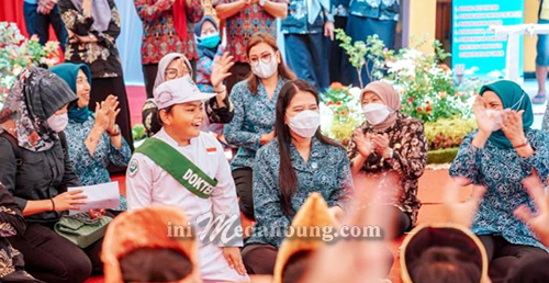 Setelah acara selesai, Ketua TP PKK selanjutnya berinteraksi dengan dokter cilik maupun pelajar lainnya, termasuk murid TK yang hadir didampingi ibunya masing-masing. Sambil duduk lesehan, Ketua TP PKK selanjutnya menyapa dengan penuh ramah. “Apa anak-anak mau hadiah?” kata Ketua TP PKK sambil tersenyum.