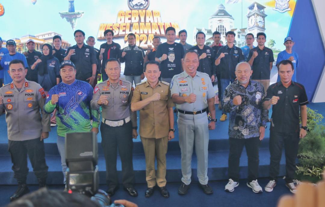 “Jadi kita berharap keselamatan berlalu lintas ini menjadi satu kebutuhan masyarakat, karena tidak ada satupun aktivitas masyrakat yang tidak menggunakan jalan dan menggunakan kendaraan bermotor sebagai sarana dan prasaranaya. Jadi dengan Gebyar Keselamatan ini dari yang hadir di sini, dari Pak Gubernur, Pak Kapolda dan seluruh komunitas yang ada, mari kita sosialisasikan, mari kita edukasi masyarakat tentang tertib berlalu lintas, tentang mengikuti aturan berlalu lintas yang ada. Karena kecelakan selalu diawali oleh pelanggaran lalu lintas,” ajaknya.