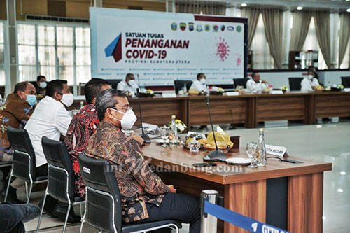 Pelaksana harian (Plh) Wali Kota Medan Ir Wiriya Alrahman MM menghadiri Rapat Koordinasi (Rakor) Pencegahan Korupsi Pada Pelayanan Publik di Sumatera Utara di Aula Tengku Rizal Nurdin Rumah Dinas Gubsu Jalan Jenderal Sudirman No 41 Medan, Jumat (19/2/2021). Acara juga dihadiri Kepala Ombudsman RI Perwakilan Sumut, Abyadi Siregar, Sekretaris Daerah Sumatera Utara Sabrina, Bupati/walikota se Sumatera Utara serta pimpinan OPD Provinsi Sumatera Utara dan kabupaten/kota.