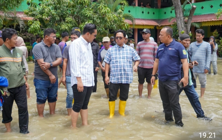 Wali Kota Medan, Rico Tri Putra Bayu Waas, mengunjungi para korban banjir di Kecamatan Medan Labuhan yang mengungsi di SD Negeri 060950 Jalan Kolonel Yos Sudarso dan Masjid Al-Ikhlas Jalan Titi Pahlawan, Kelurahan Pekan Labuhan, Minggu (12/10/2025).
