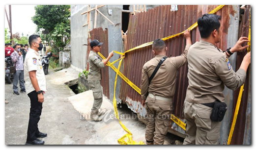 Akibat tidak memiliki Izin Mendirikan Bangunan (IMB) sebuah bangunan dua lantai di segel oleh Pemko Medan di Jalan Bunga Mawar, Kecamatan Medan Selayang. Kamis (13/10/2022).