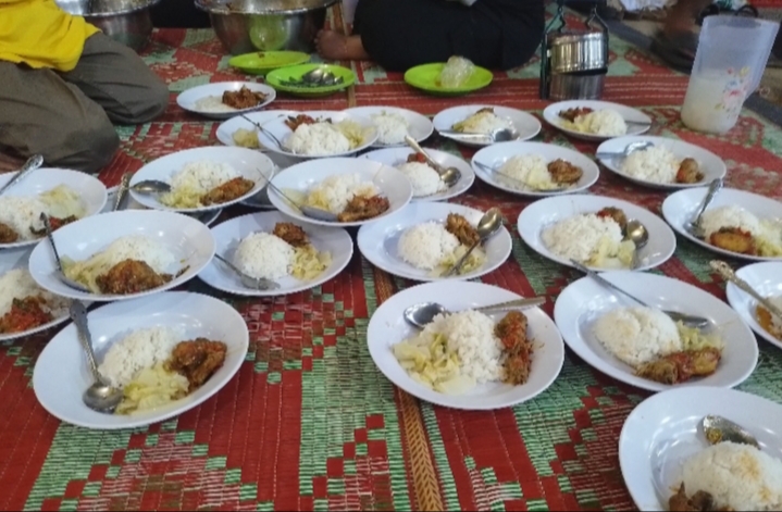 Tradisi berbuka Puasa bersama masyarakat dan Jemaah Masjid Jamiq bertempat di halaman Masjid dengan menu teh manis makan bersama nasik kuning,nasik campur, lontong, lauk ikan ayam dan telur.